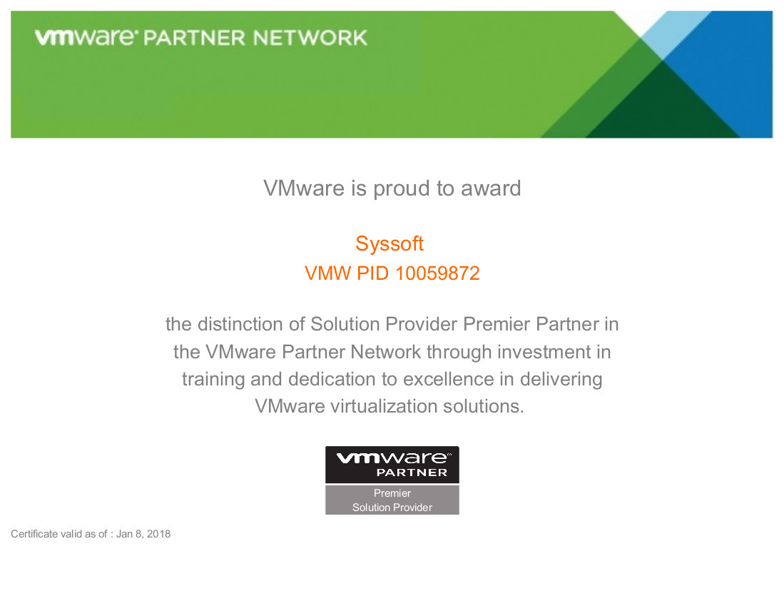 Один из лидеров в области программ для «облачных» инфраструктур и мобильности бизнеса. С помощью разработок VMware тысячи организаций по всему миру перестраивают свой бизнес на цифровые платформы. ПО для дата-центров, мобильности бизнеса и защиты информации VMware используется во многих странах.